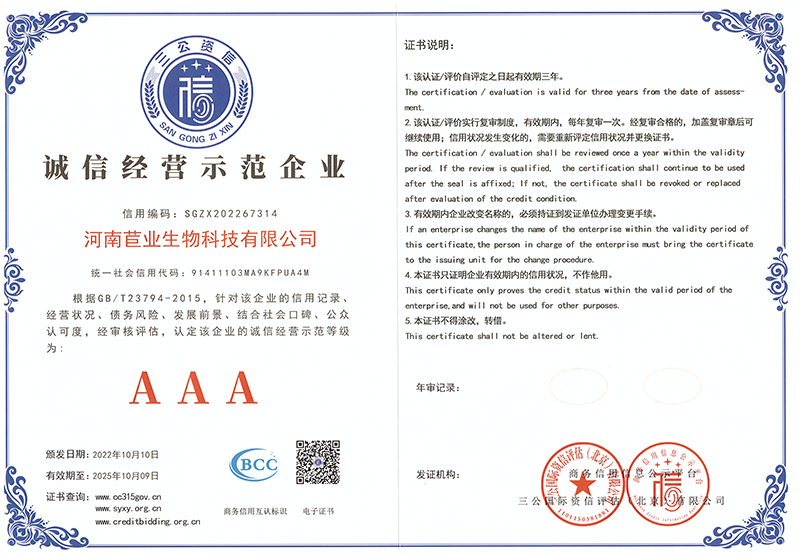 河南苣业荣誉证书