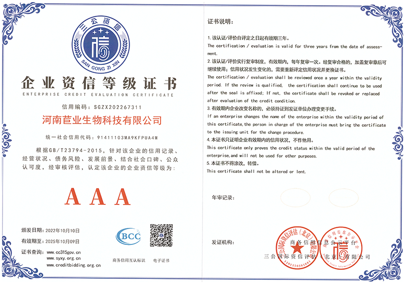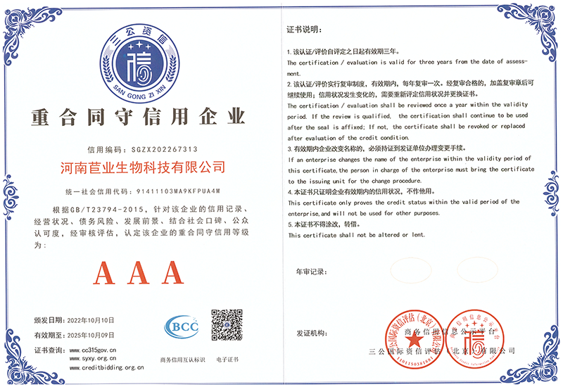 企业信誉等级证书